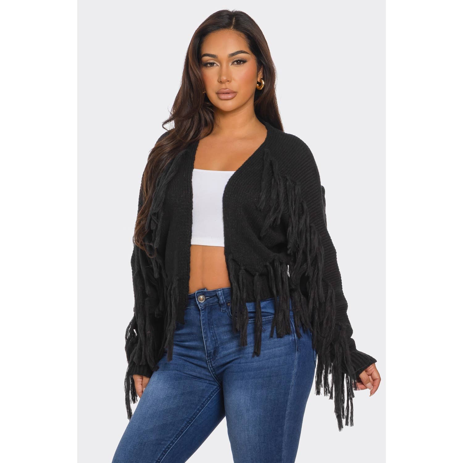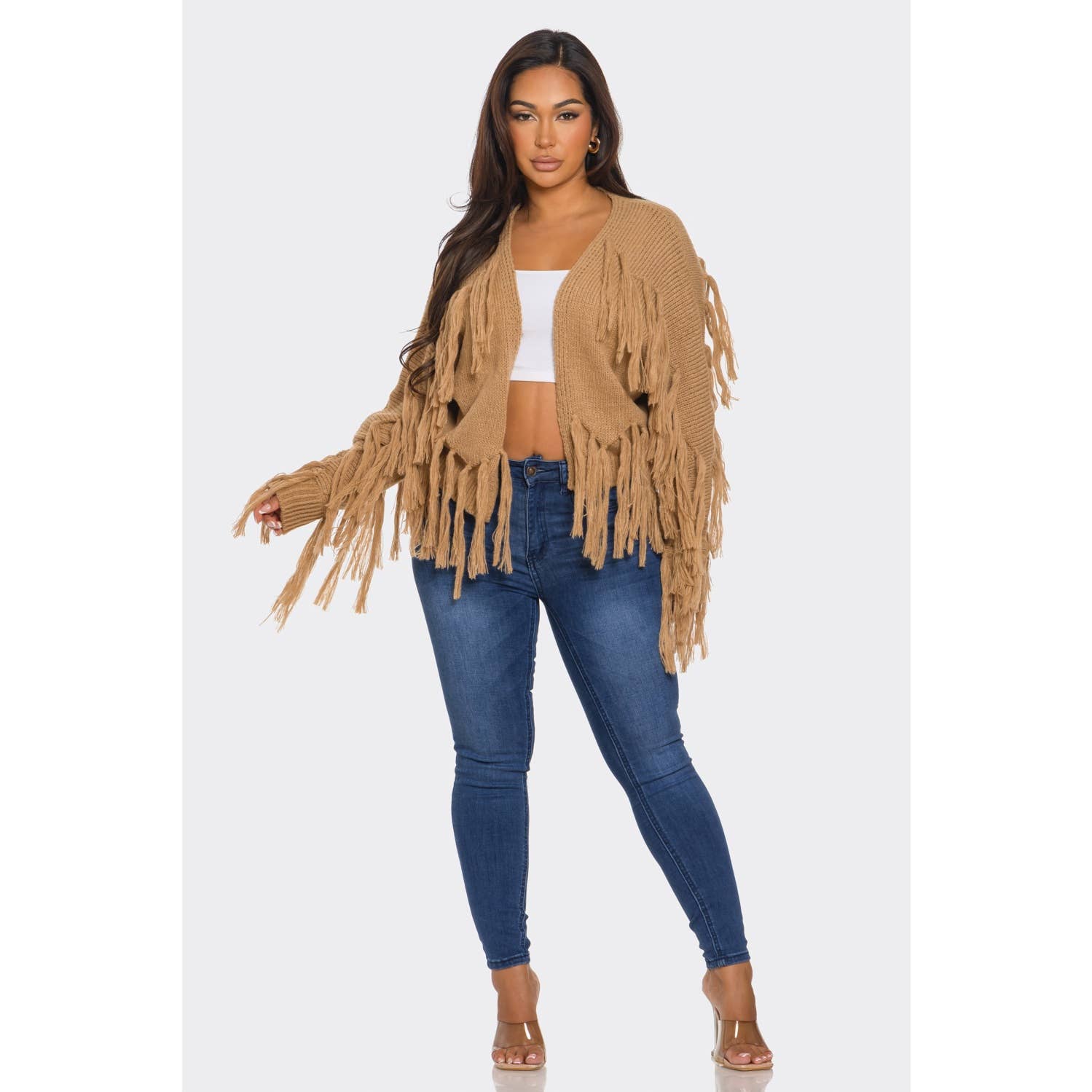 Oversized open front Cardigan with Fringes. Dresses up any outfit