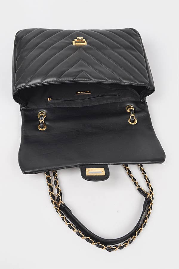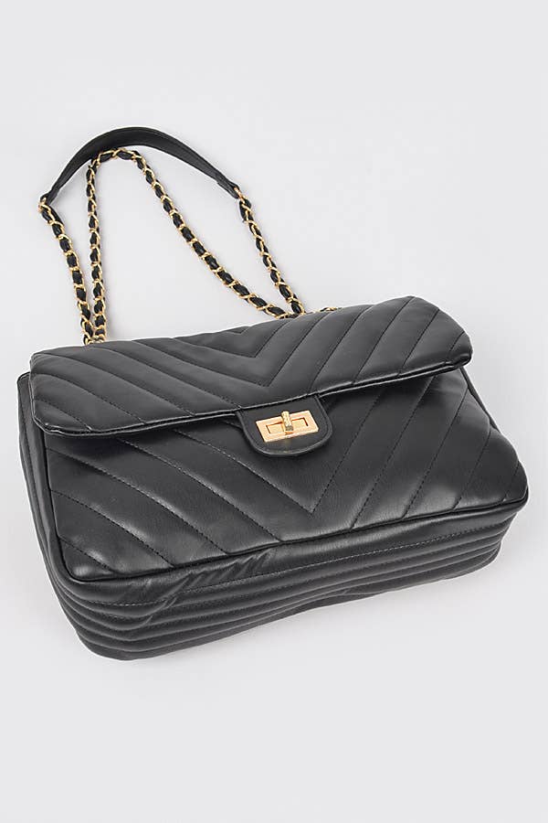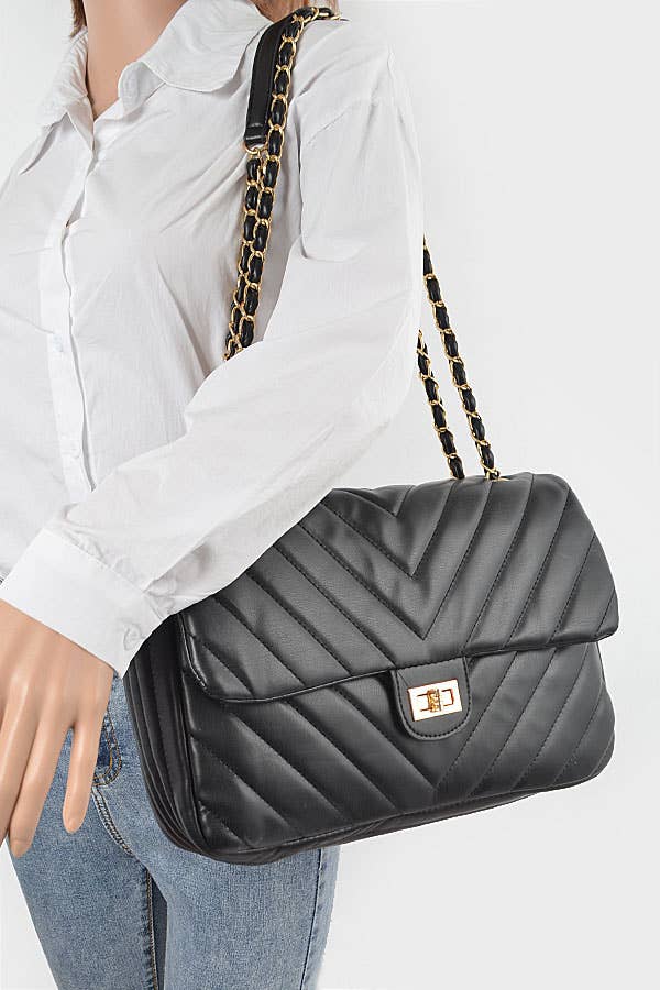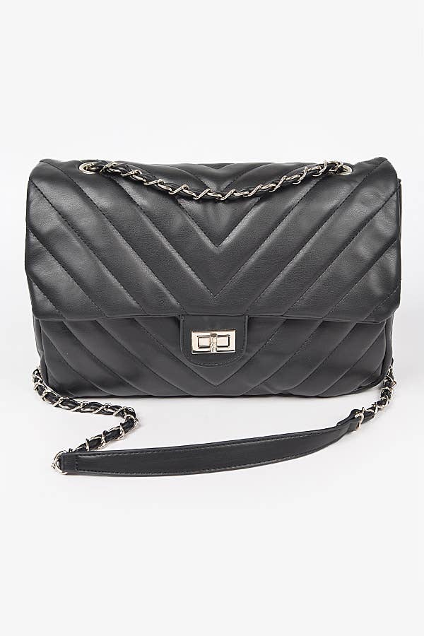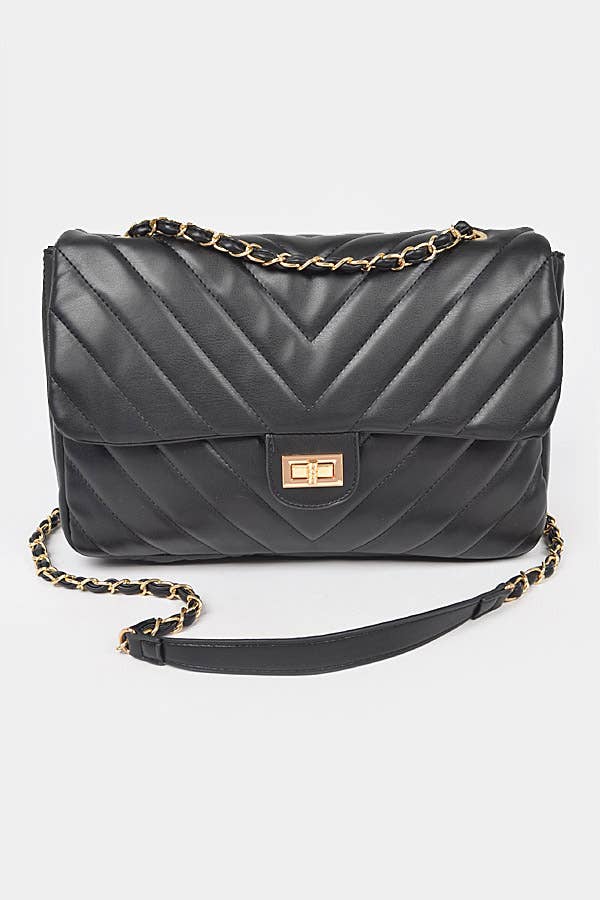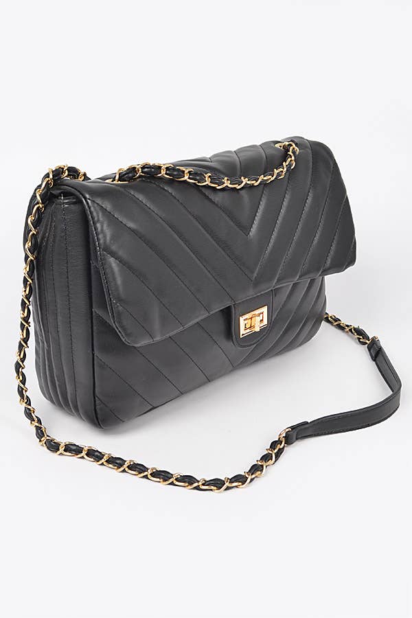 * Quilted Large Flap Crossbody Bag with Mixed Metal.