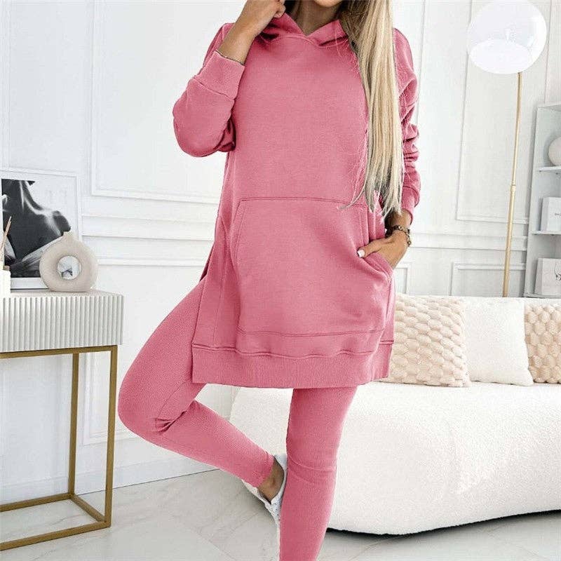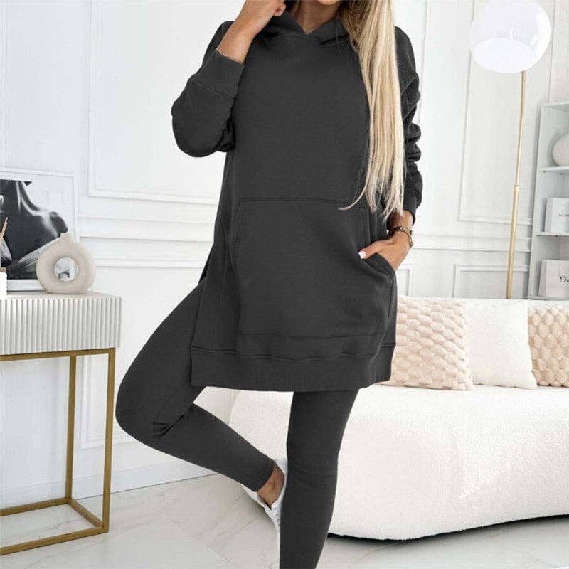 Solid Color Hoodie And Ribbed Leggings Two-Piece Set