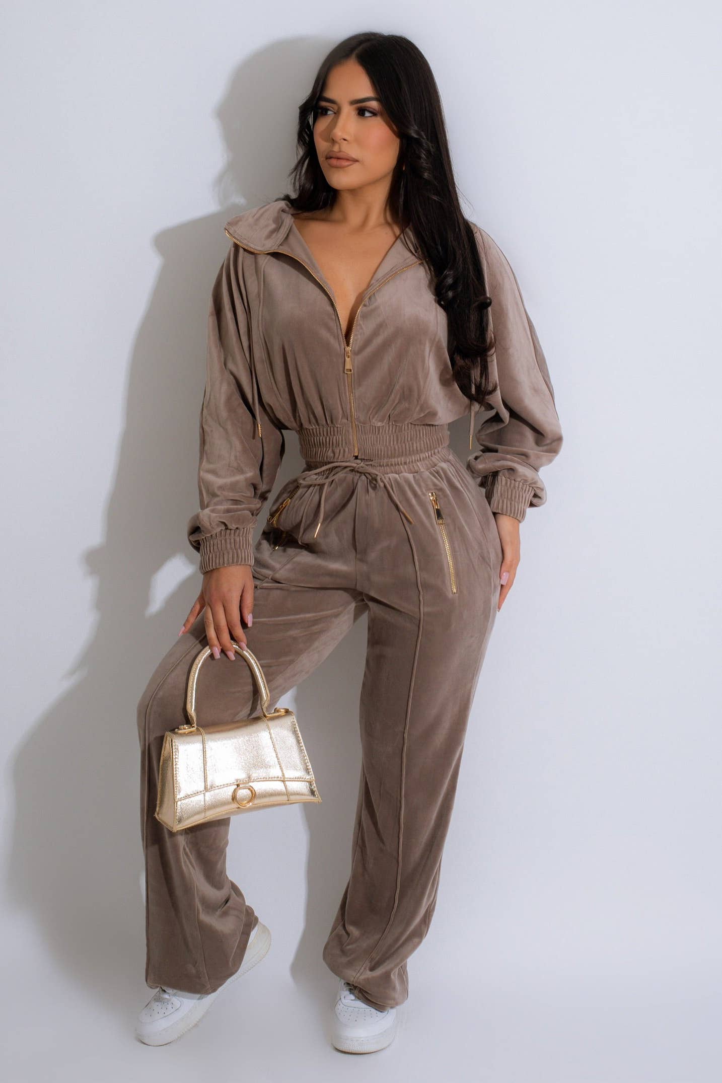 VELOUR ZIP UP JACKET & PANTS SET